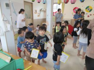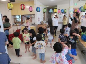 室内は、保育の中で各々に作った提灯が、お祭りの雰囲気を盛り上げてくれています。