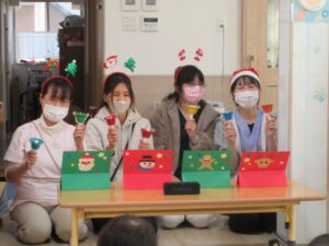 次のお楽しみは看護師さんからの出し物。ハンドベル演奏を聞かせてくれましたよ。